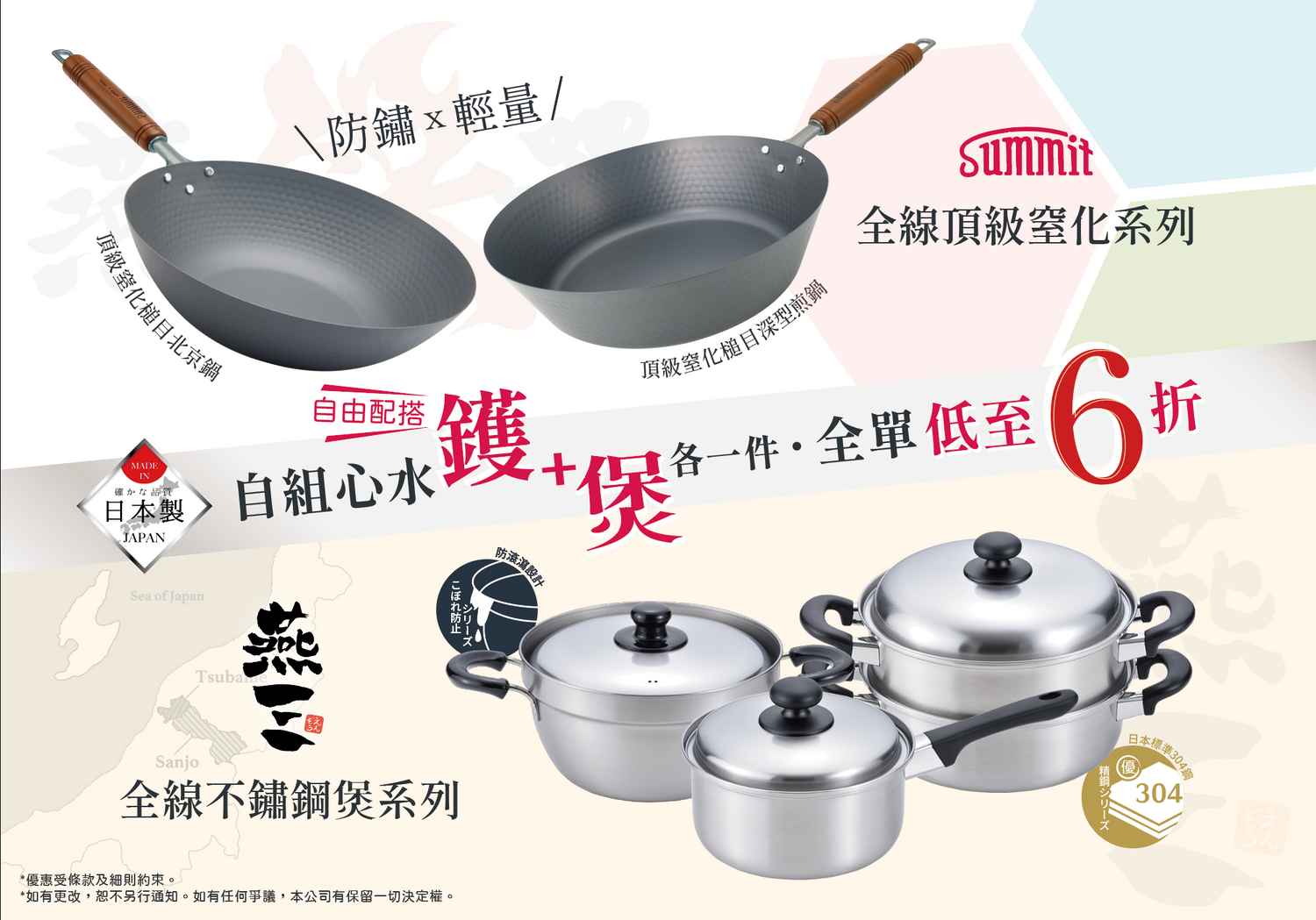 全線SUMMIT 窒化鐵系列8折發售🔥,加購全新不鏽鋼煲系列,全單即享額外8折🈹。立即探索【鑊+煲】自由組合最抵價!