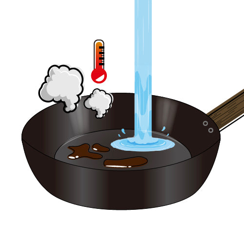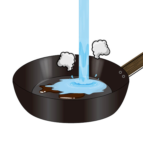 浸水會浸走保護鐵鍋的油份(油膜),因此勿讓鐵鍋浸著水喔!