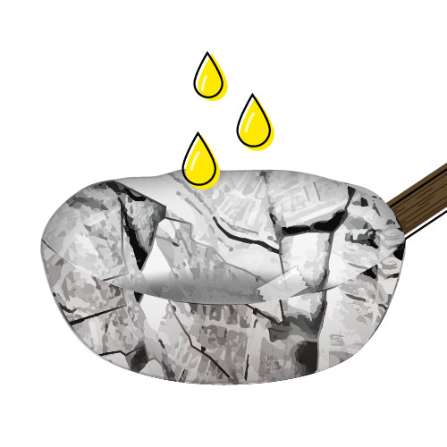 溫水能避免鐵鍋因溫差而變形。以溫熱水清洗更能解決大片污漬及很油膩的鐵鍋!