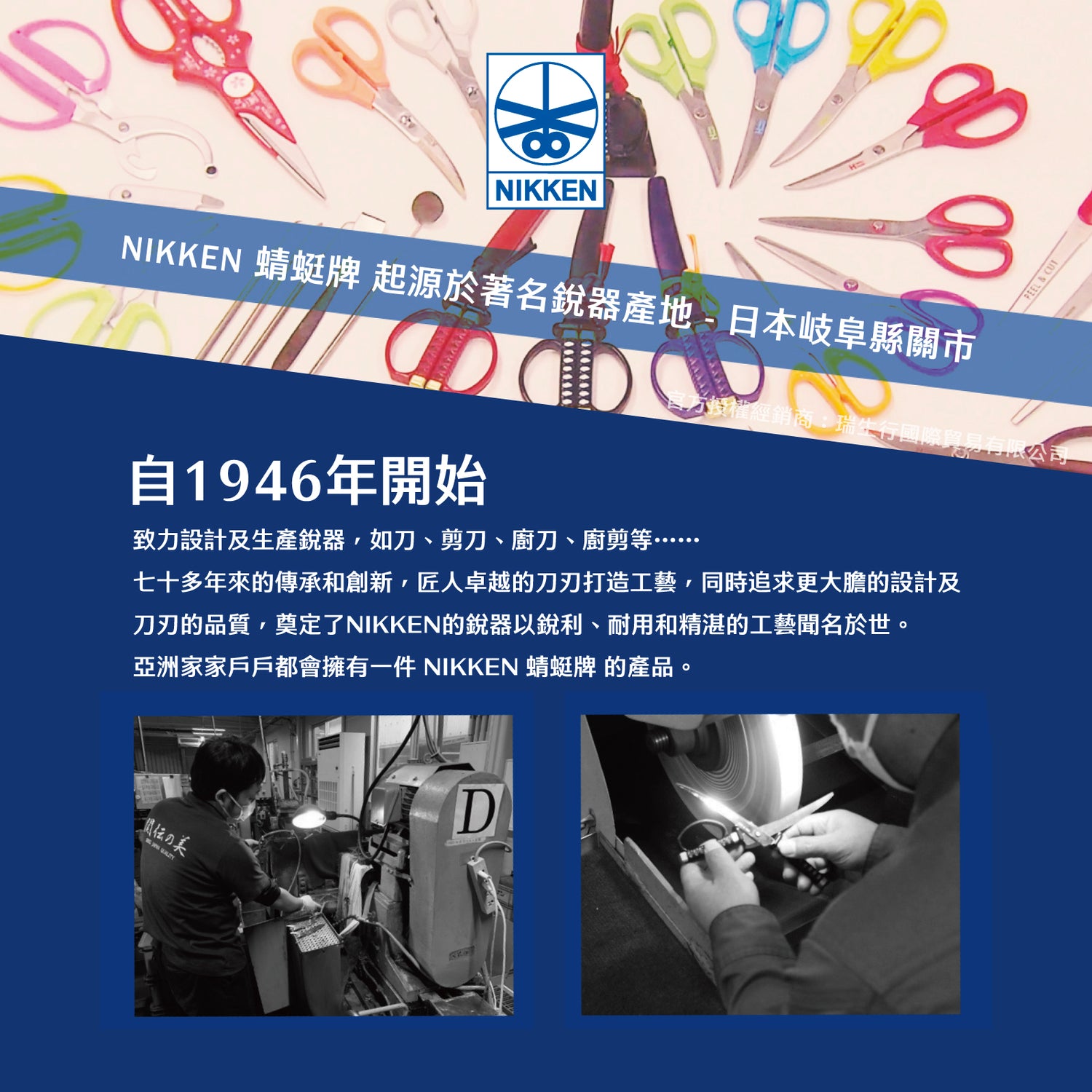源於著名銳器產地 - 日本岐阜縣關市。致力設計及生產銳器,如刀、剪刀、廚刀、廚剪等......七十多年來的傳承和創新,匠人卓越的刀刃打造工藝,奠定了NIKKEN的銳器以銳利、耐用和精湛的工藝聞名於世。