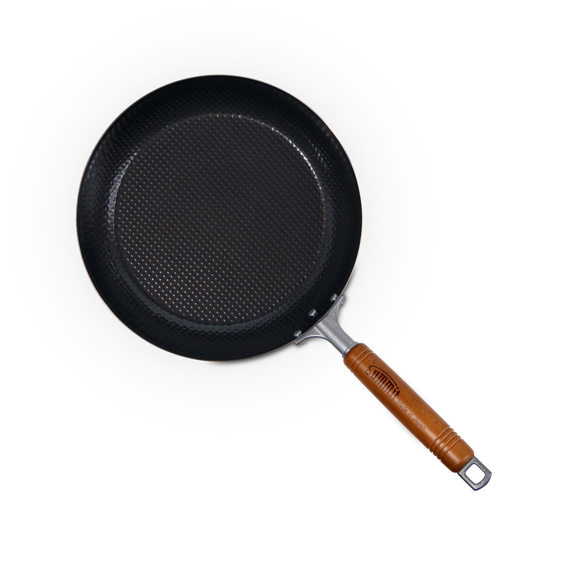 隨時隨地拿起的小炒鍋! 日本燕三条製鐵流 Summit 北京鍋,適合烹調1-2人份量的菜式,最適合炒菜、炒肉,充滿鑊氣。全鐵北京鍋外型獨特,粗身手柄能令你握緊翻炒;附有兩個倒咀,方便傾倒醬汁。 如何開鑊?鐵製鍋具,只需用熱水清洗及以少許油潤鍋,省時方便。 平面鍋底,適用於感應式爐灶如電磁爐。