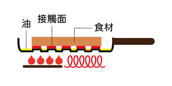 一般平面鐵鍋接觸面較大,需要比較多的油量才能防止黏底,過熱亦會容易造成水份流失