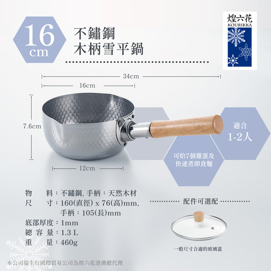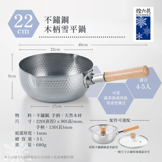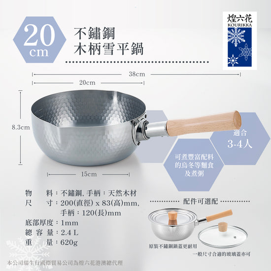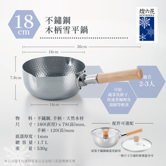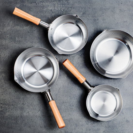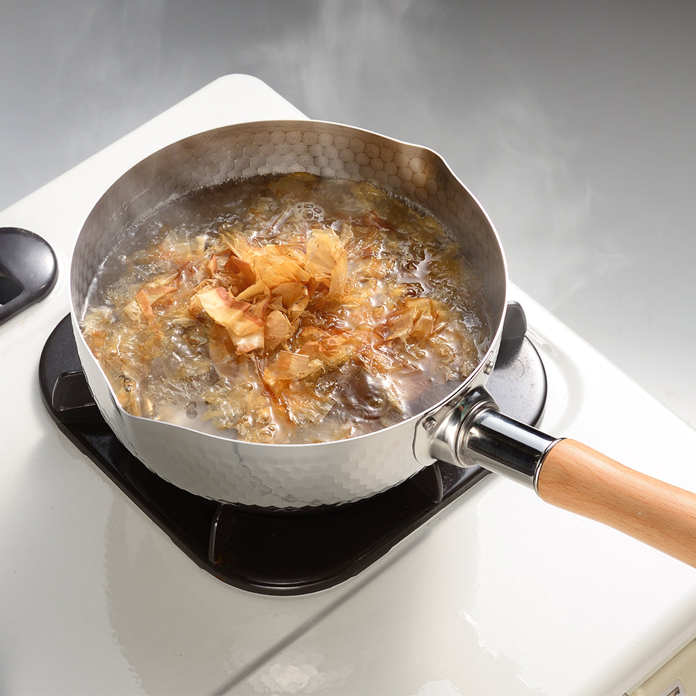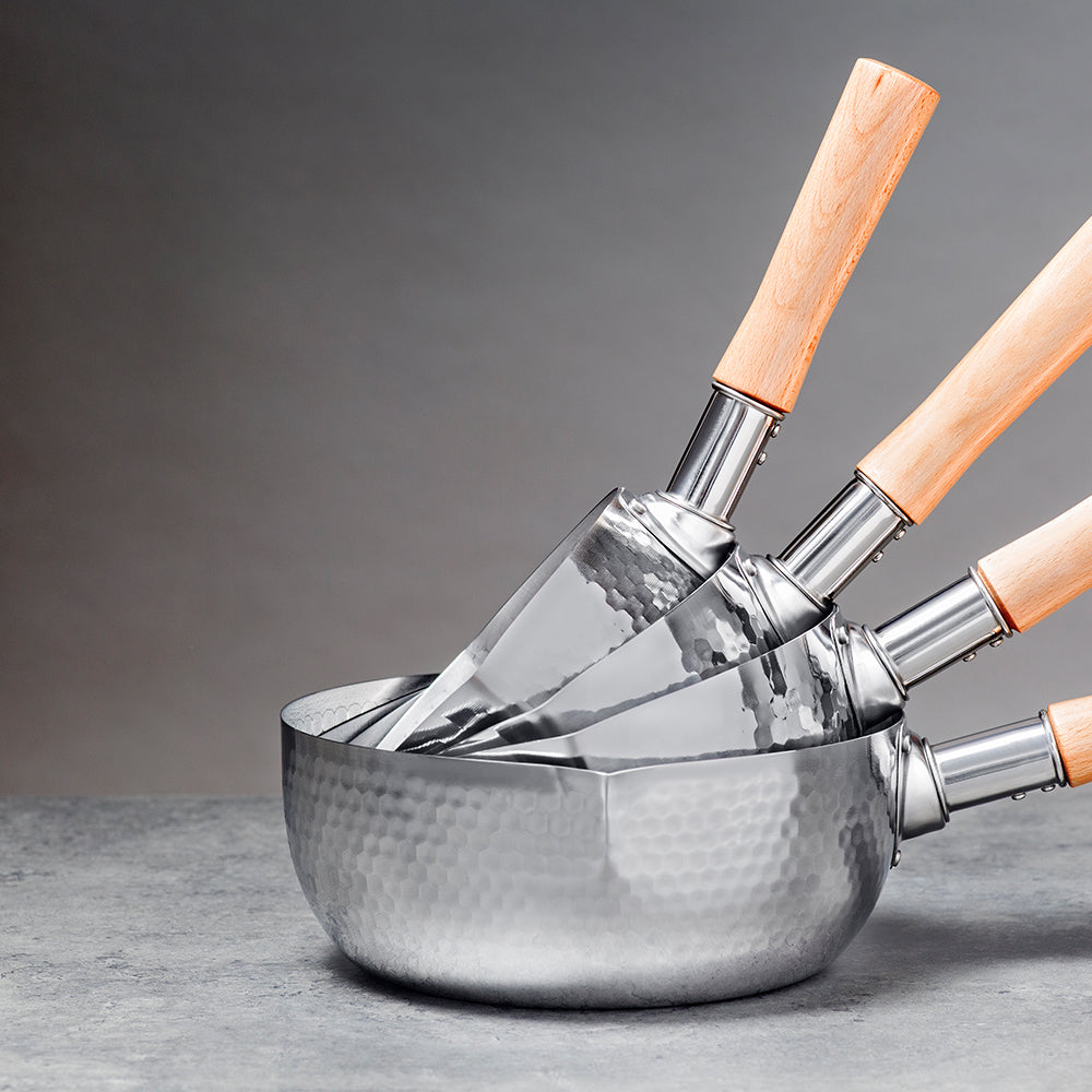 傳統的和食,離不開「煮物」與「汁」(湯品)。烹調時,使用日本傳統雪平鍋就能輕易煮出日式家常的美味了。不鏽鋼製的雪平鍋,打破了食材種類的規限,而且可用於任何爐具。而燕三条煌六花的雪平鍋完美保留了雪平鍋的特色︰傳熱快且防溢的六角槌紋、燉煮湯汁專用的倒咀、防燙手又快乾的天然木柄。喜歡暖胃溫飽的和式料理的你,必須要常備一個雪平鍋在家了!