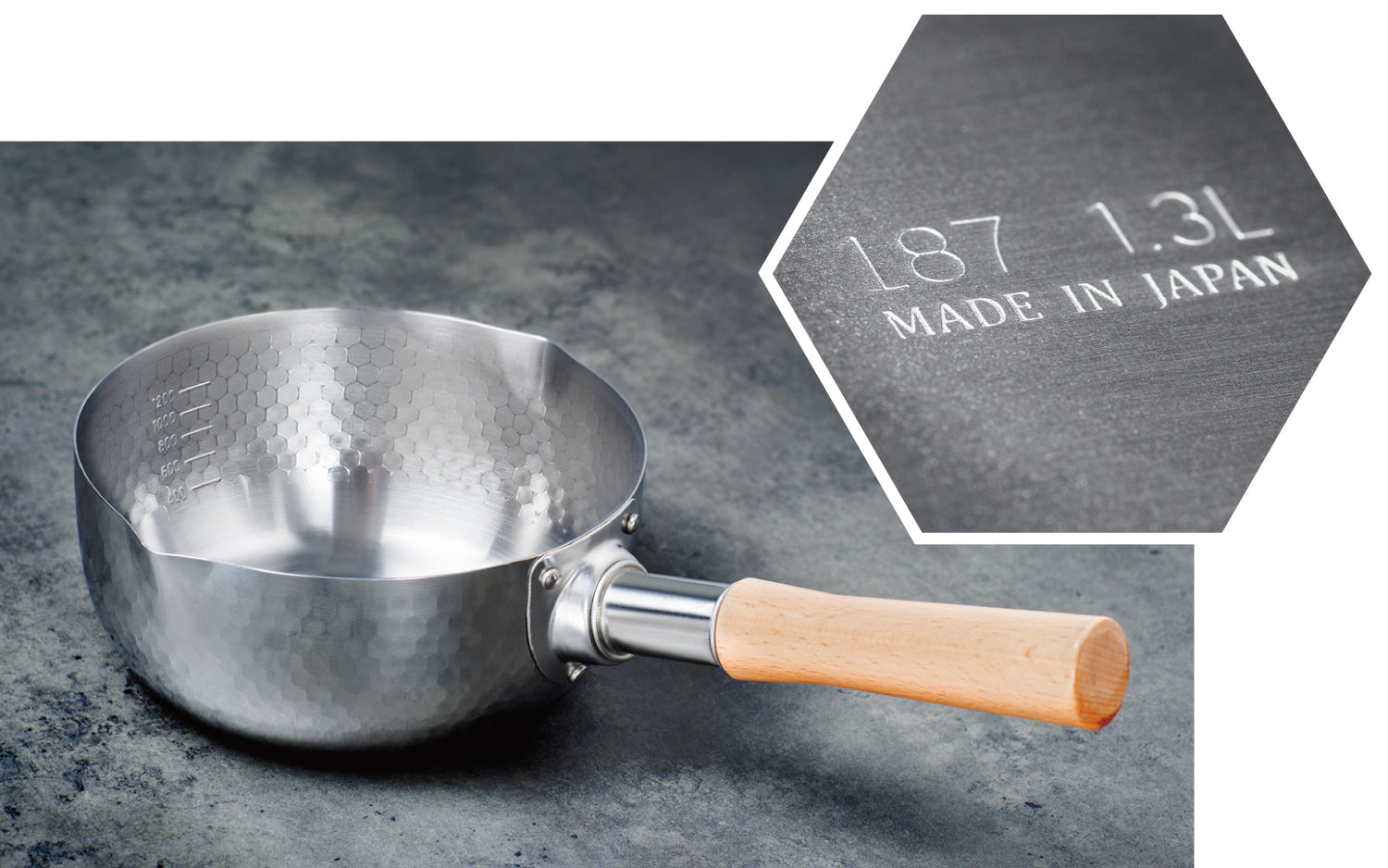 煌六花雪平鍋歷經長年歲月不斷傳承下來的技術的成就。方便易打理的鍋具,成就日本國民雪平鍋煌六花在產品上施以如雪花結晶般美麗的槌目紋理,相信這樣的製品能為充滿笑容的餐桌增添助力。