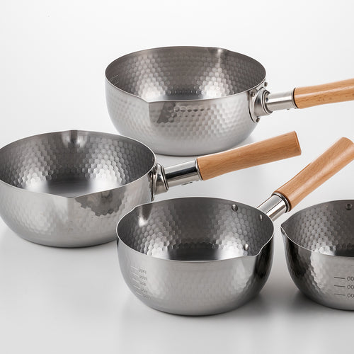 傳統的和食,離不開「煮物」與「汁」(湯品)。烹調時,使用日本傳統雪平鍋就能輕易煮出日式家常的美味了。不鏽鋼製的雪平鍋,打破了食材種類的規限,而且可用於任何爐具。而燕三条煌六花的雪平鍋完美保留了雪平鍋的特色︰傳熱快且防溢的六角槌紋、燉煮湯汁專用的倒咀、防燙手又快乾的天然木柄。喜歡暖胃溫飽的和式料理的你,必須要常備一個雪平鍋在家了!