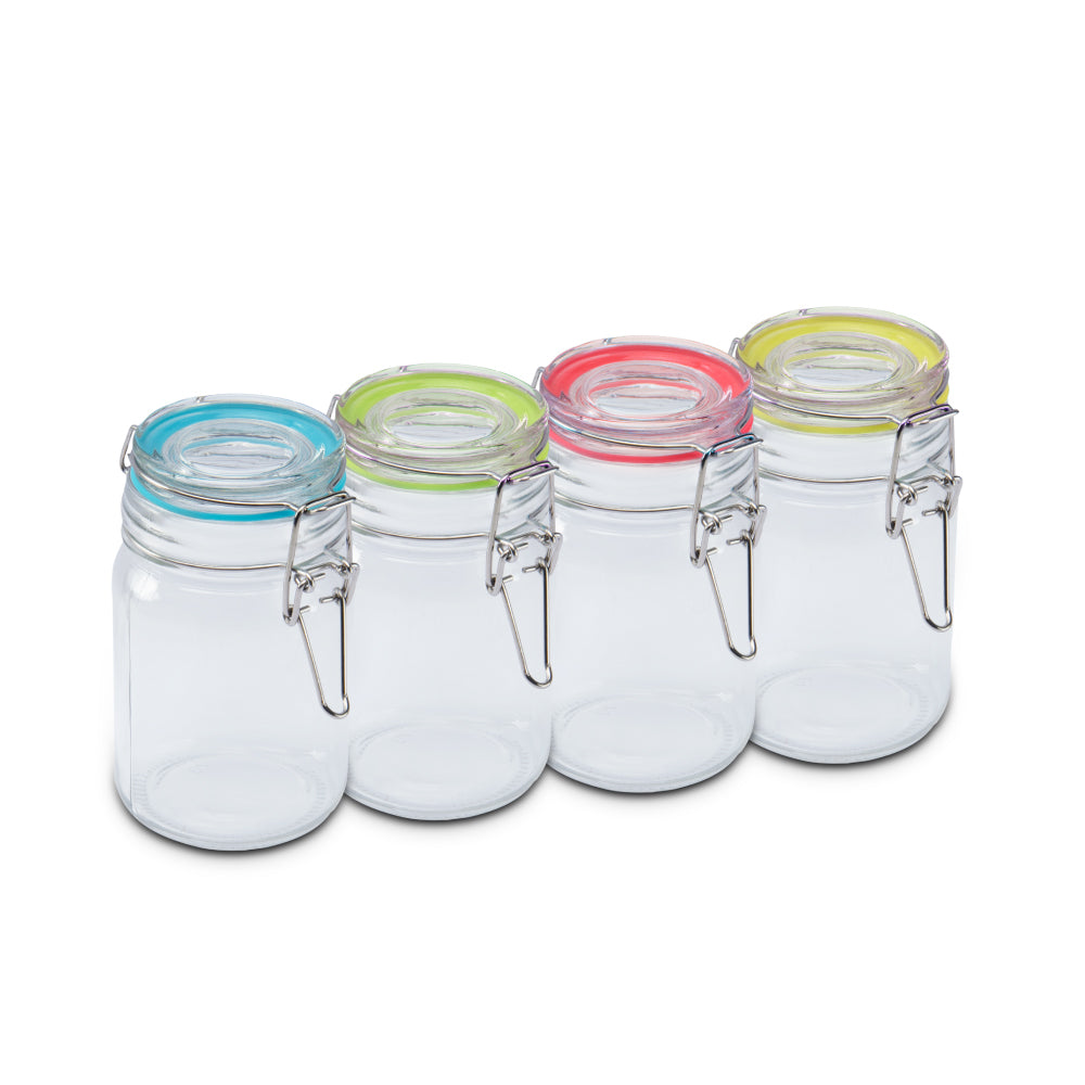 密封玻璃瓶,小容量設計不但適合存放自家製醬汁、果醬、烘焙小餅乾、果仁等,放在附帶密封扣的小瓶中,整齊擺放,美觀又實用。透明玻璃材質,一目了然,而且可防腐蝕,裝酸性的食材也沒有問題!終結雜亂空間,收納有序,整潔自然。