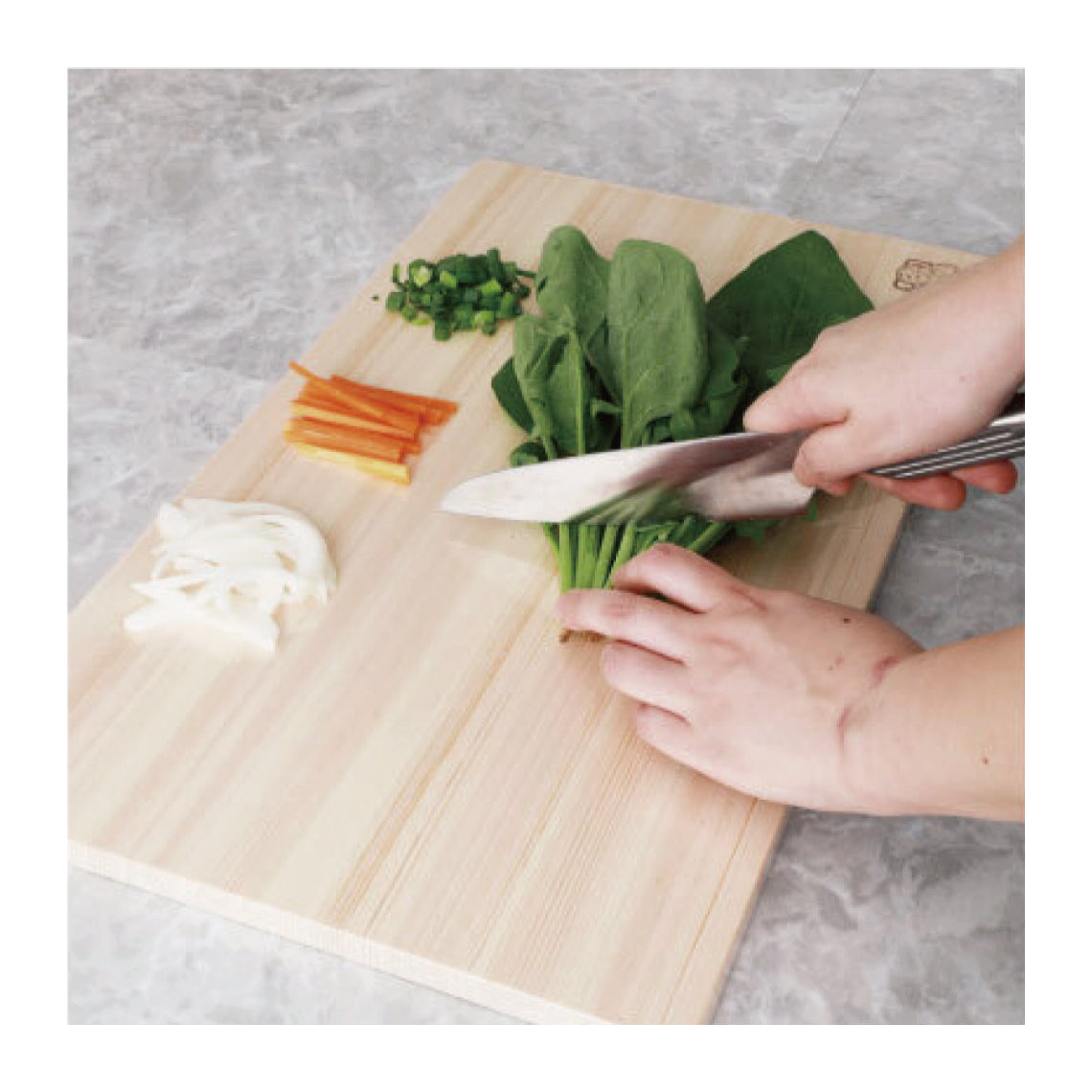 在檜木裡,有著超高的防菌繁殖及防蟲效果,食材的氣味不易黏附在砧板上,十分衛生。