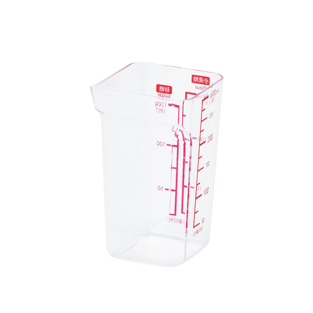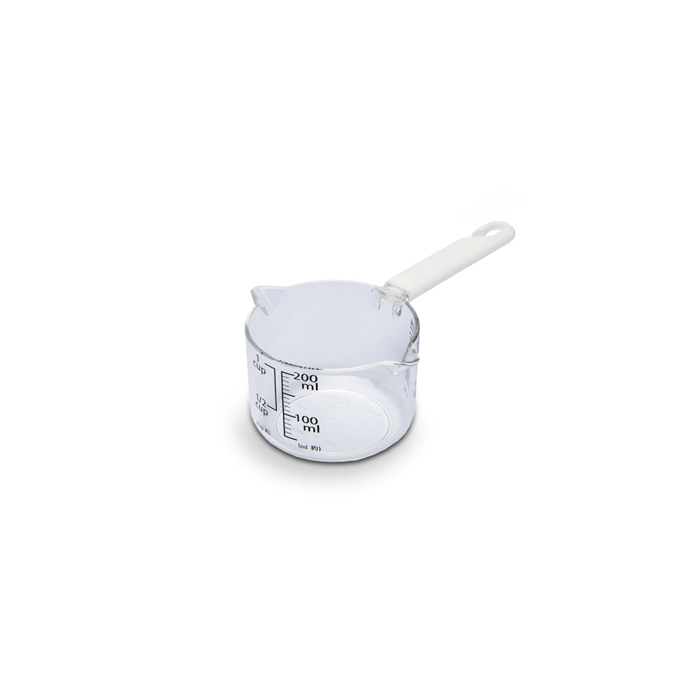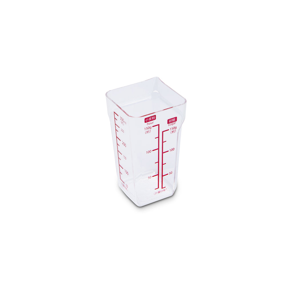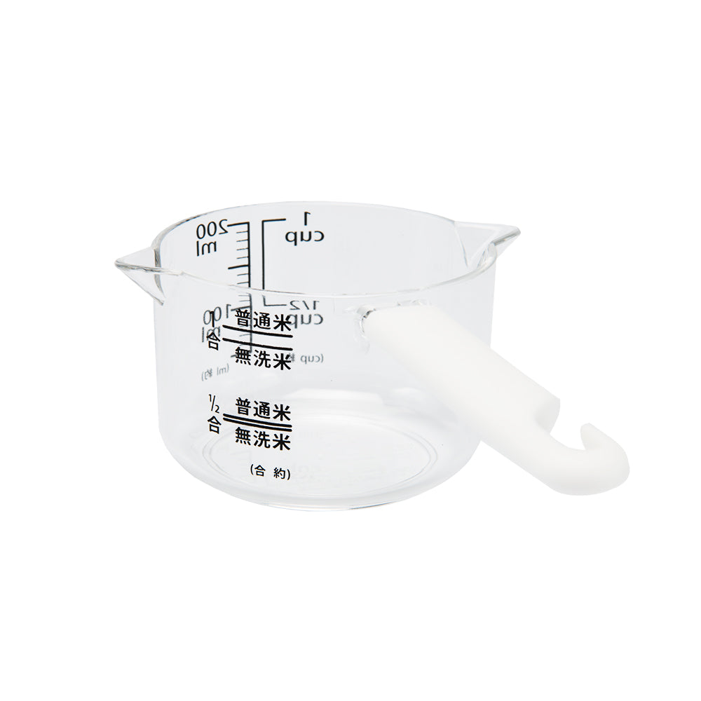 在食譜上總會看到各種調味料及材料的份量,而在烘培蛋糕、麵包時更需要精確計算麵粉,奶等食材的比例,這時候量杯就是不可或缺的用具。量杯上有三個刻度,可以量度杯、毫升,以至白米份量,方便就手!