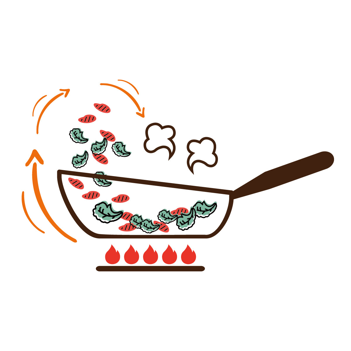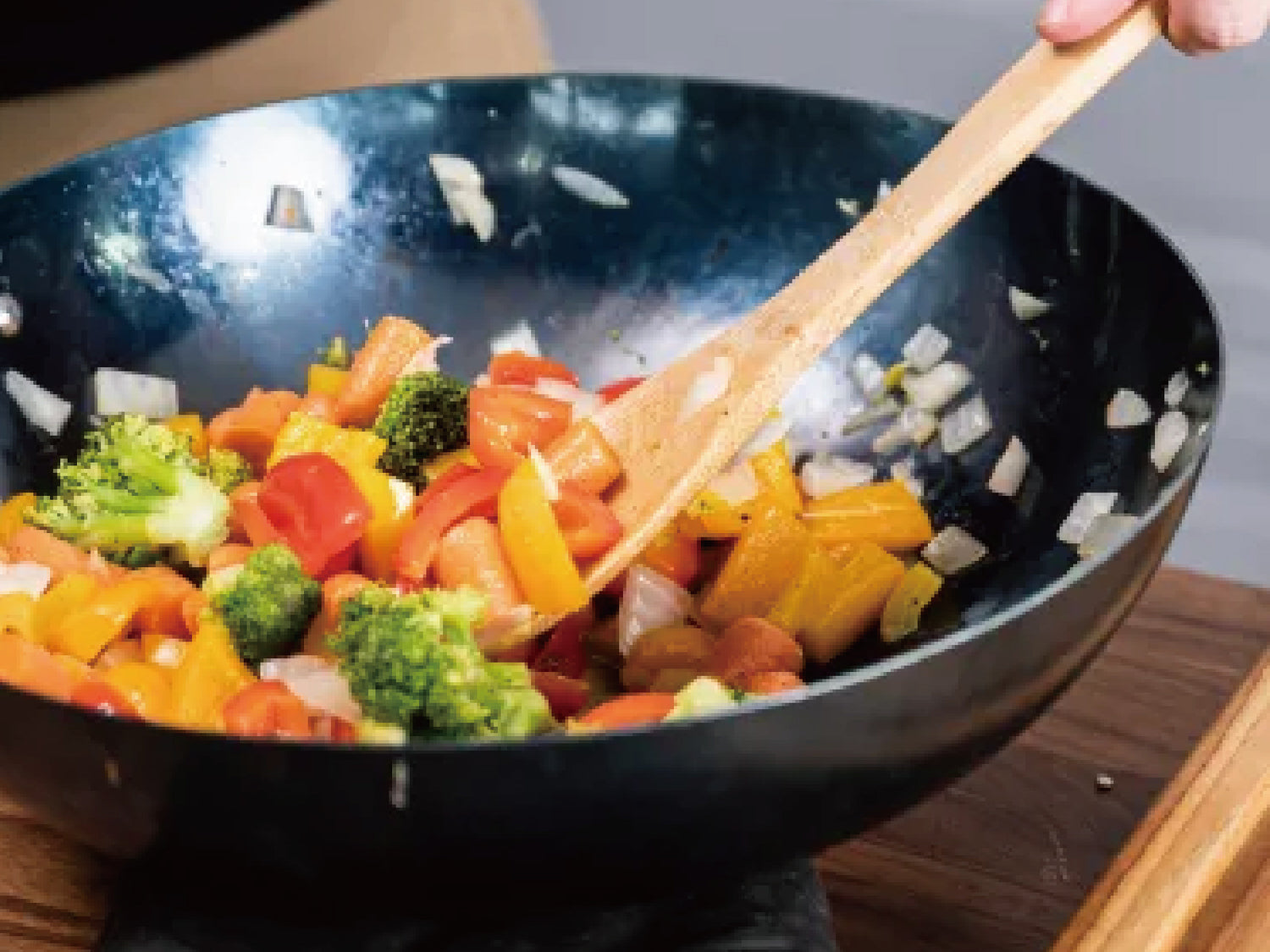 拋鑊愛好者要留意,無需大尺寸也能拋!鍋身斜邊設計,令拋鑊時細小的食材不易濺出,隨著弧度回到鍋中,最適合炒飯、炒米粉等需要拋鑊的小炒。大弧形鍋身同時有小平底,適用於感應式爐灶。